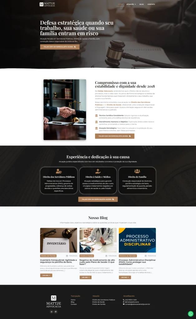 Site para o escritório Mattje, essencial para a apresentação do escritório na internet, contendo todas as informações necessárias e destacando os especialistas que fazem parte do time.